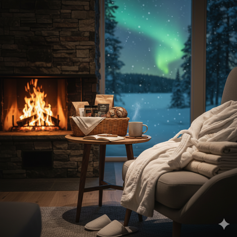 What’s in it? The maximum level of comfort. Includes all high-quality upgrades, additional wellness extras for the sauna, as well as practical equipment for your Northern Lights adventures.
